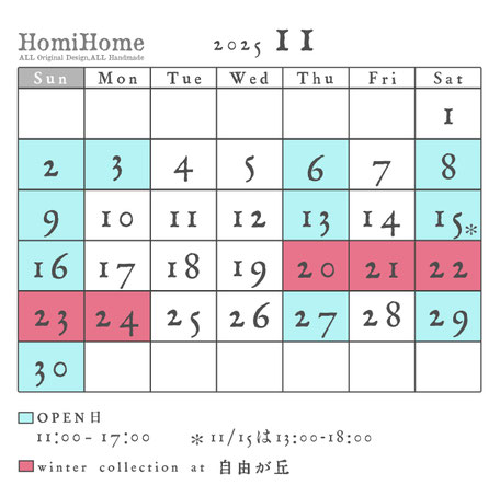 20~24の5日間は、自由が丘STAGE悠にてHomiHome winter collectionを開催します。