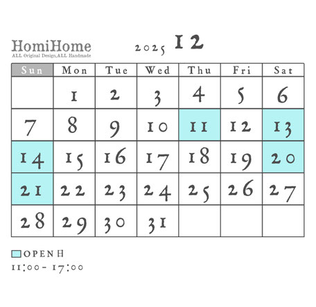 12月のアトリエオープン日が少なくて申し訳ありません。