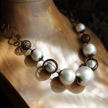 SV・14KGF・真鍮・レジンなど、また染色されている商品は、空気中の水分、ほこり、汗などに反応し変色することがございます。