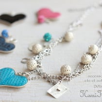 オリジナルハートの型に、様々な素材をはめ込んでデザインしています。